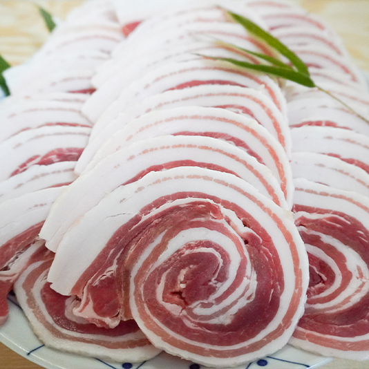 バラ肉ともも肉を料理に扱いやすい厚さにスライスしています。