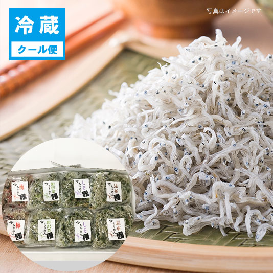 朝ごはんちりめんセット C8 野沢菜ちりめん60g×2、梅ちりめん60g×2、紫蘇ちりめん60g×2、昆布ちりめん60g×2